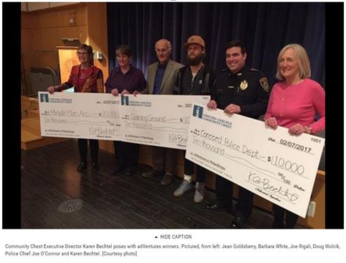 On Wednesday, March 8, the Community Chest awarded $10,000 each to Minuteman Arc, Gaining Ground and the Concord Police Department from its Cornerstone Fund for new, innovative programs.